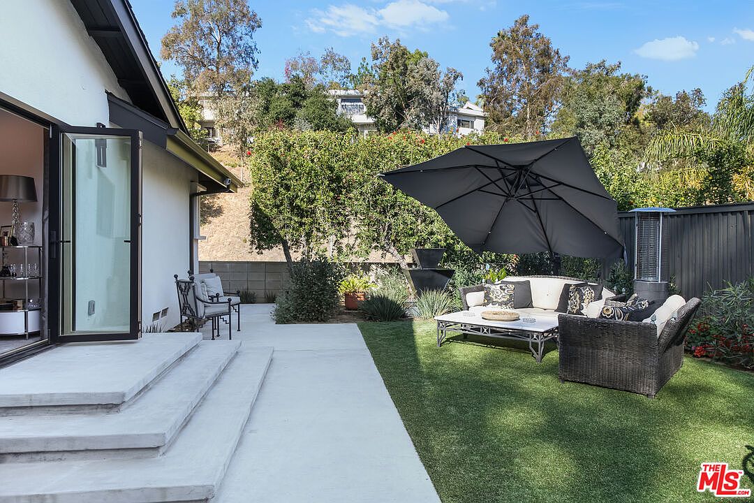 A private entry off Sepulveda Lane opens to a generous parking court and, beyond it, a residence that reads low to the street and generous once inside. This beautifully remodeled mid-century modern home blends luxury with the clarity of its 1962 origins.
